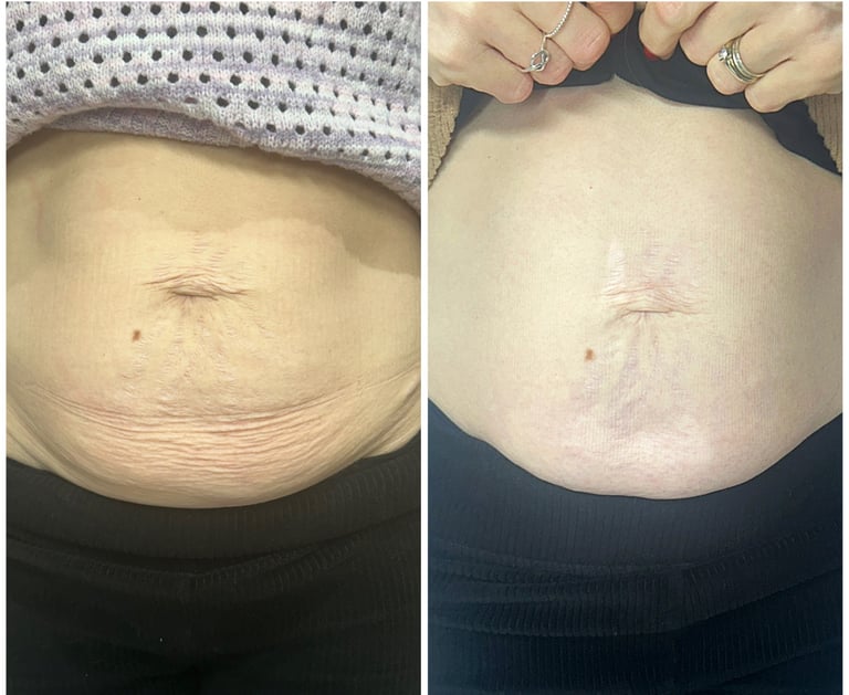 Our clients results after just one treatment to improve skin laxity and stretch marks.